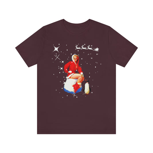 RETRO KERST T'SHIRT GIRL MET PINGUIN